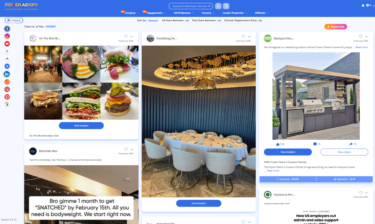 PowerAdSpy is a powerful ad intelligence and competitive analysis platform built to help marketers, growth teams, and businesses uncover real-world ad strategies across major platforms like Facebook, Instagram, YouTube, TikTok, Google, and more. By giving access to millions of live and historical ads, PowerAdSpy enables teams to see what’s working in the market, reverse-engineer competitor tactics, and optimize their own campaigns with data-backed insights. With intuitive search filters, trending ad alerts, and detailed performance insights, PowerAdSpy makes it easy to explore ads by niche, geography, creatives, copy, and engagement, reducing guesswork and accelerating campaign success. The platform also supports audience insights and competitive dashboards to fuel smarter marketing decisions.