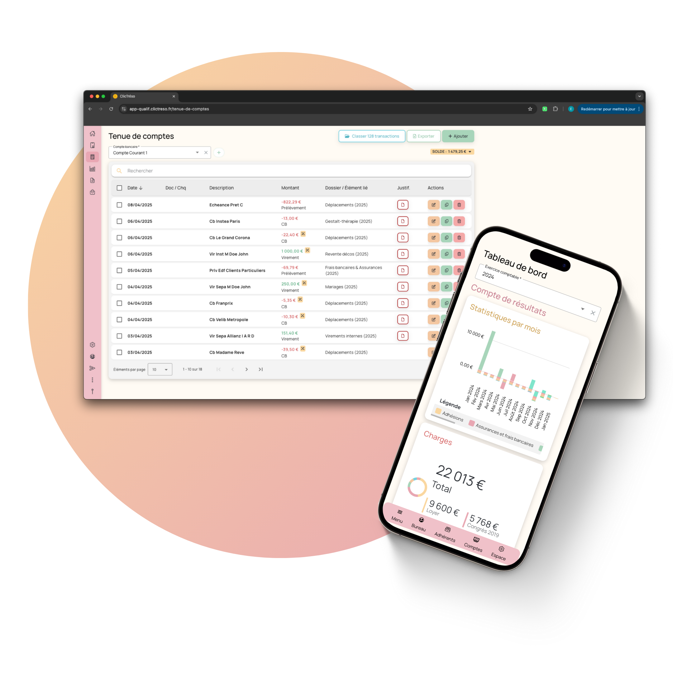 ClicTréso est un outil de facturation 100% gratuit pour association et auto-entrepreneur. La version Premium permet d'ajouter des automatisations comme le rapprochement bancaire, le paiement en ligne et la télédéclaration de chiffre d'affaires. EN: ClicTréso is a 100% free invoicing tool for associations and self-employed entrepreneurs. The Premium version allows you to add automations such as bank reconciliation, online payment and online turnover declaration.